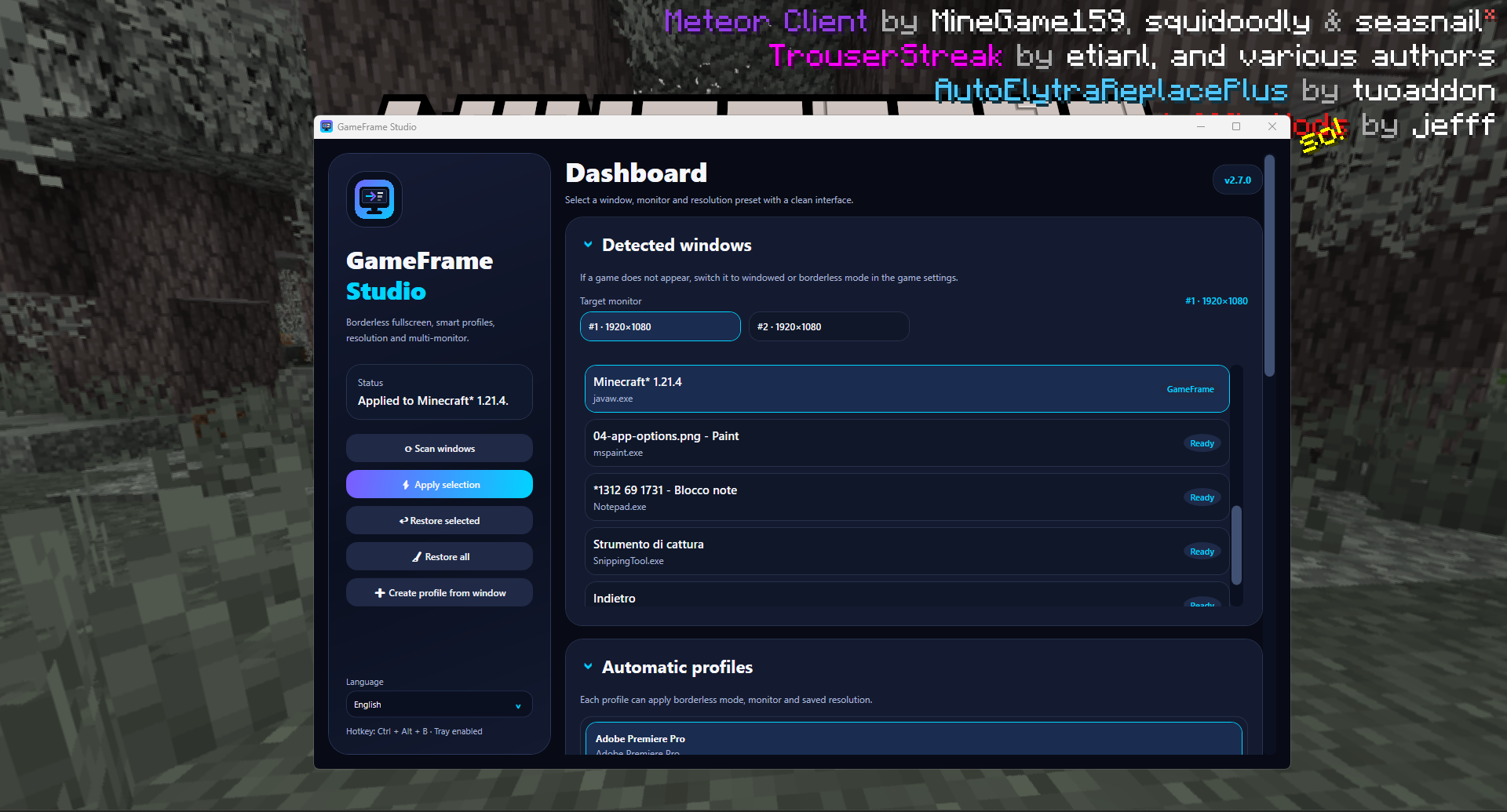 GameFrame Studio is a lightweight Windows utility for PC gamers, streamers and multi-monitor users.